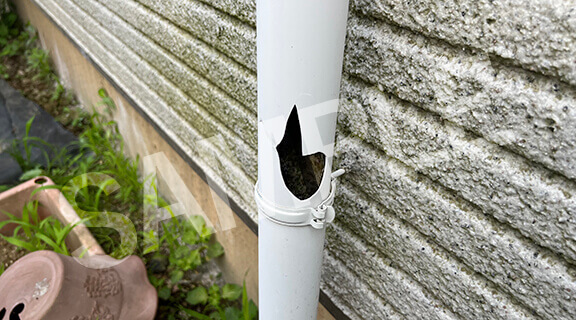 - 雪の重みで雨樋が歪んだり、落ちてしまった