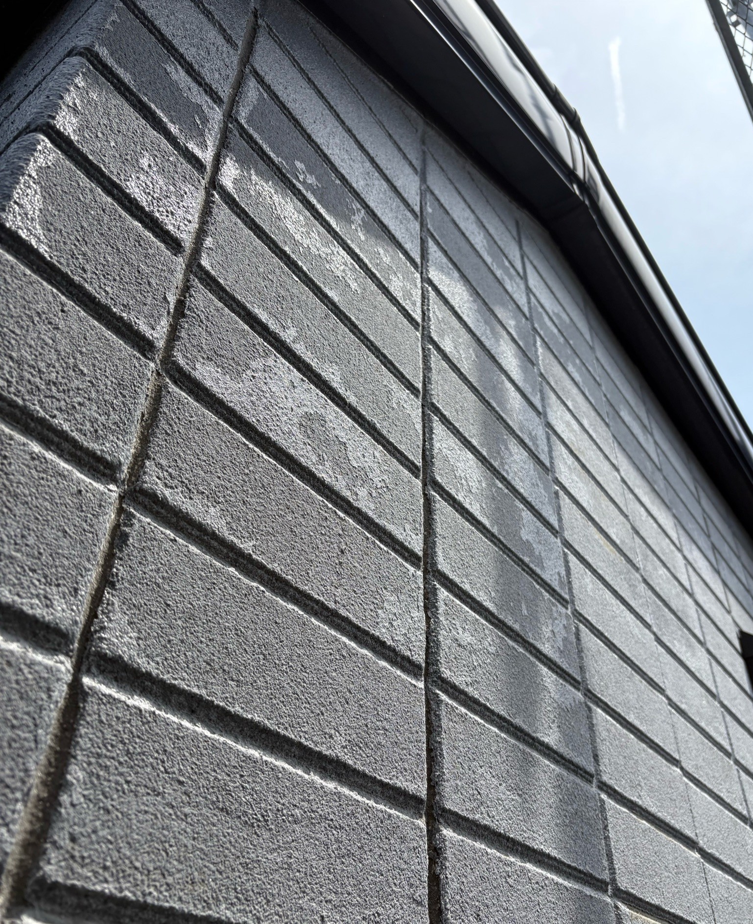 一度外壁塗装を施工済みの物件で、以前は訪問販売の業者に石調の吹付塗装で仕上げが行われておりました。
