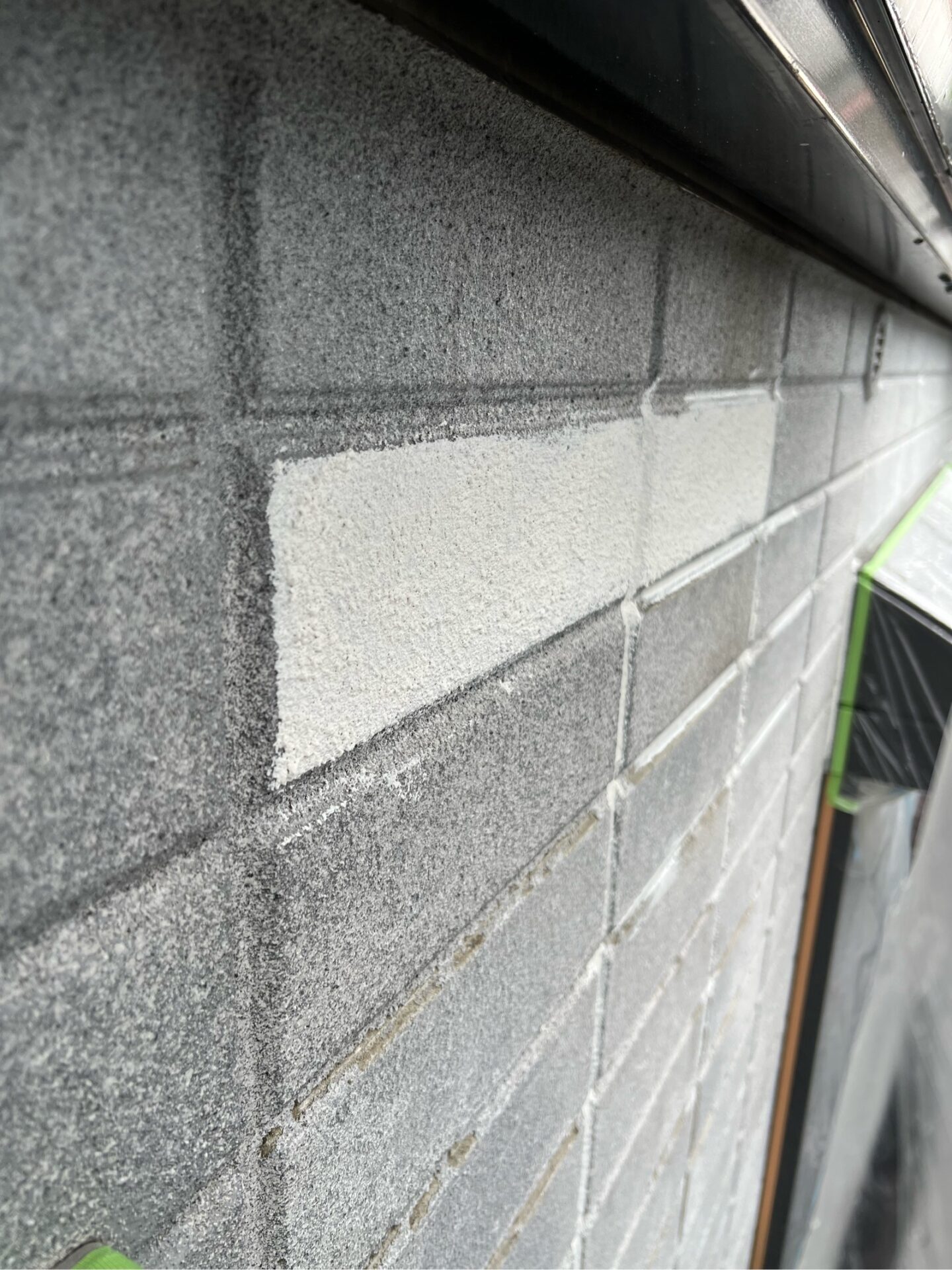 既存塗膜の脆弱部は捲って、左官下地調整、骨材入りの下塗りでパターン調整、全体を浸透性の高いシーラーとフィラーの2工程での下塗りを行わせていただきました。