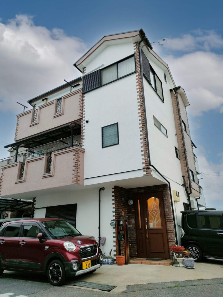 【大東市_外壁塗装・屋根塗装】 ホワイト×ピンクの爽やかなツートンに!