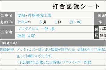 プロタイムズでは《打合記録シート》を用い、施主様とお話した大切な内容を記載して、後々の見解違いをなくすように努めています。