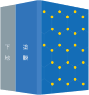 「「ラジカル」を捕捉する「HALS(光安定剤)」を配合。ラジカル制御型白色顔料の補完として、ラジカルによる塗膜劣化を抑制する。
